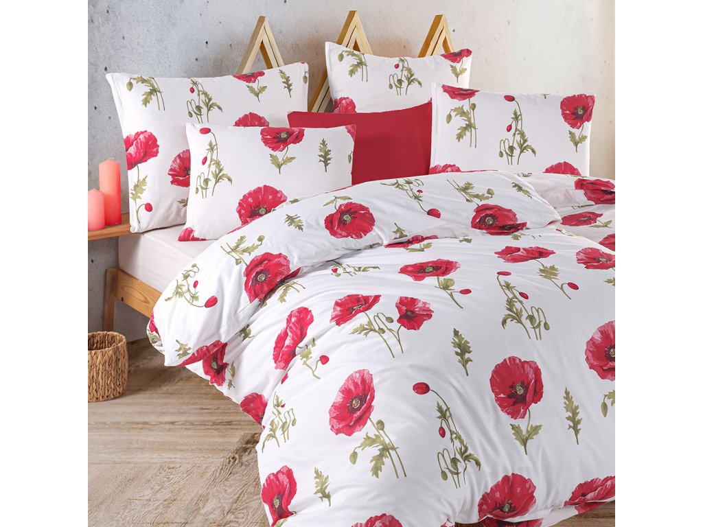 Bavlněné povlečení s červenými květy máku, je úžasnou variantou pro Vaše ložnice