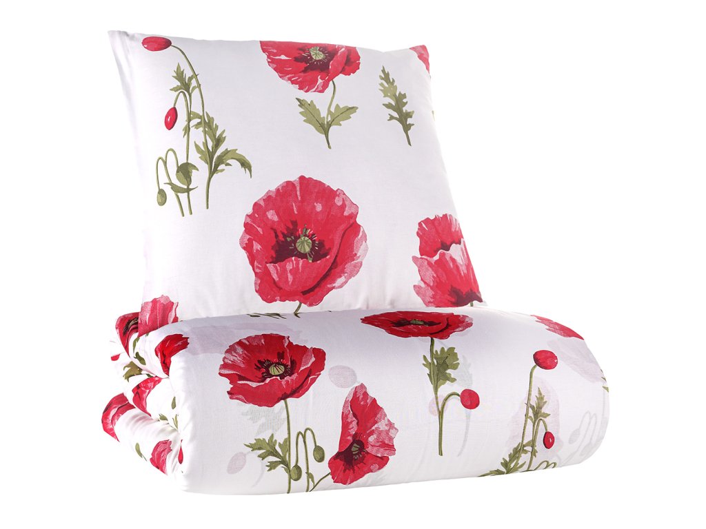 Červené máky jsou z obou stran povlaku přikrývky i polštáře