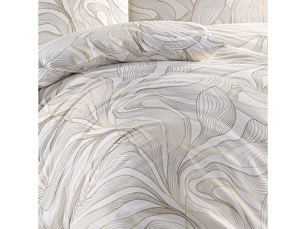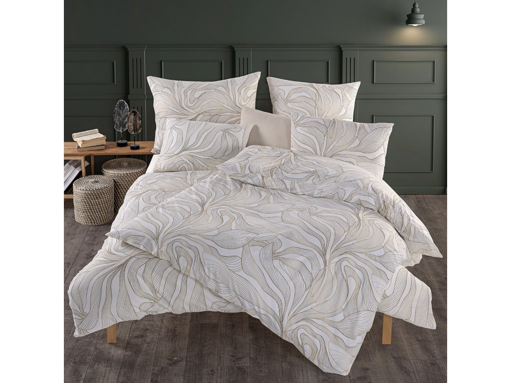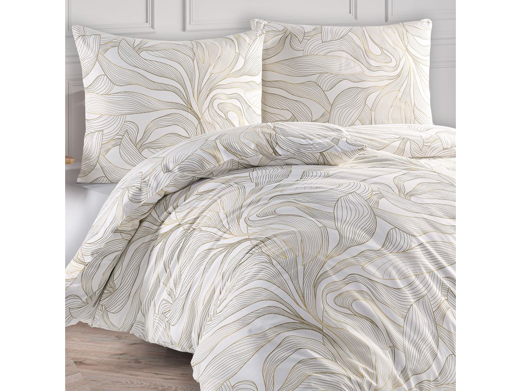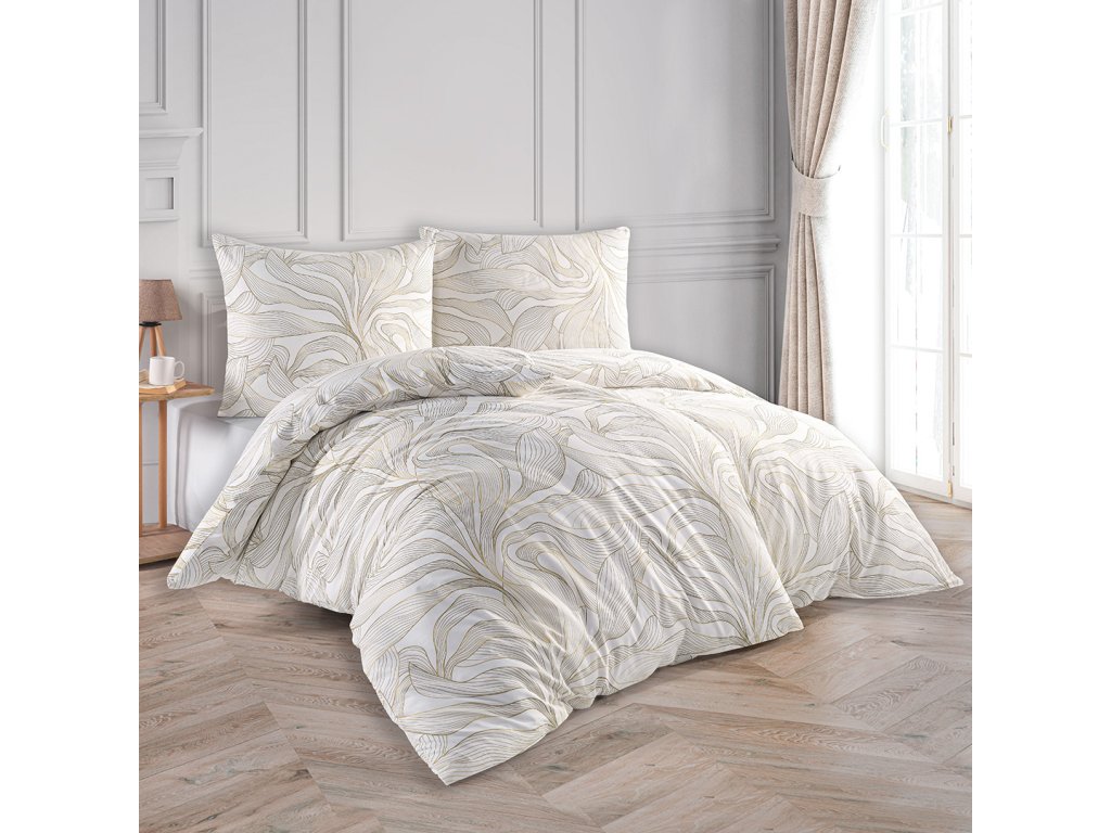 Na světlém smetanovém podkladu se rozprostírají velké jemné obrysy květů v hnědé barvě, které zcela změní celkový vzhled Vaší postele