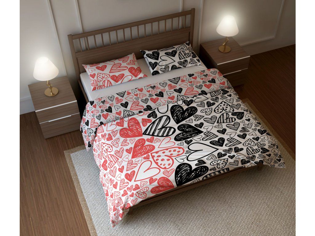 Bavlněné povlečení se srdíčky různých velikostí, v černé a červené barvě je vyrobeno ze 100 % bavlny.