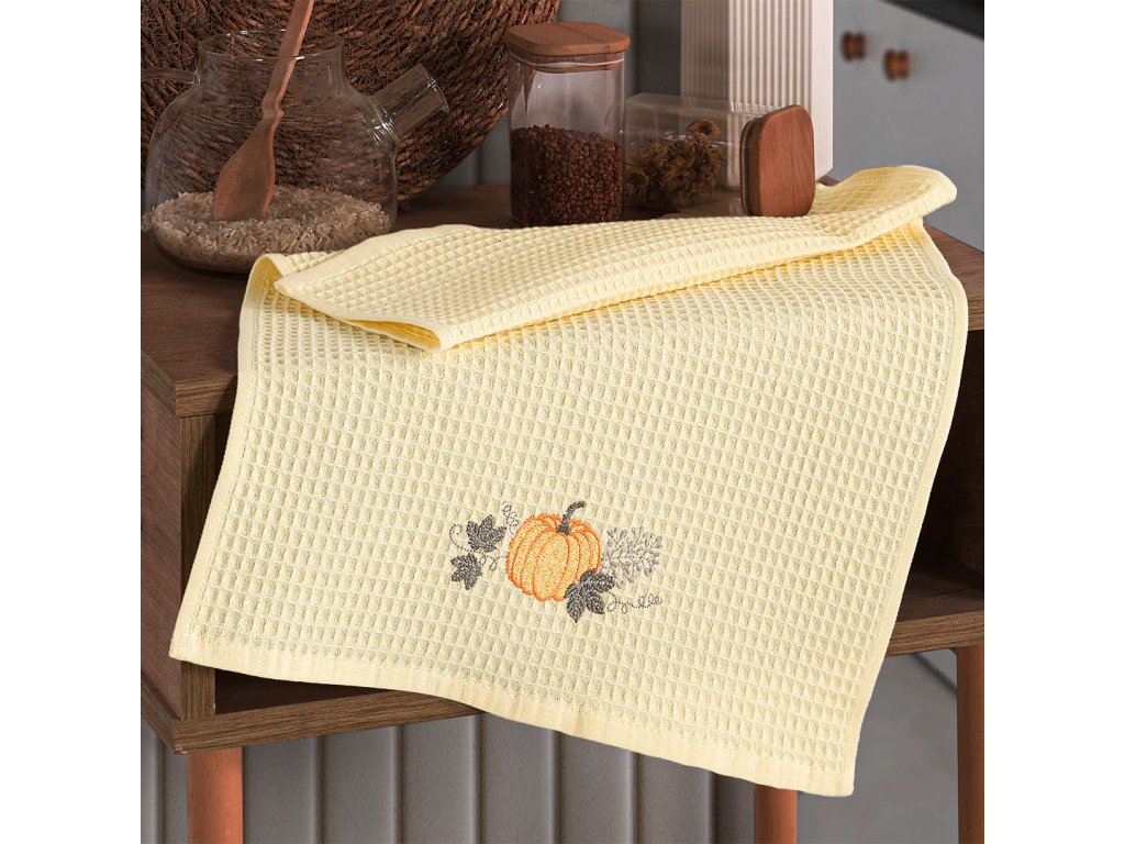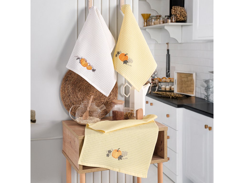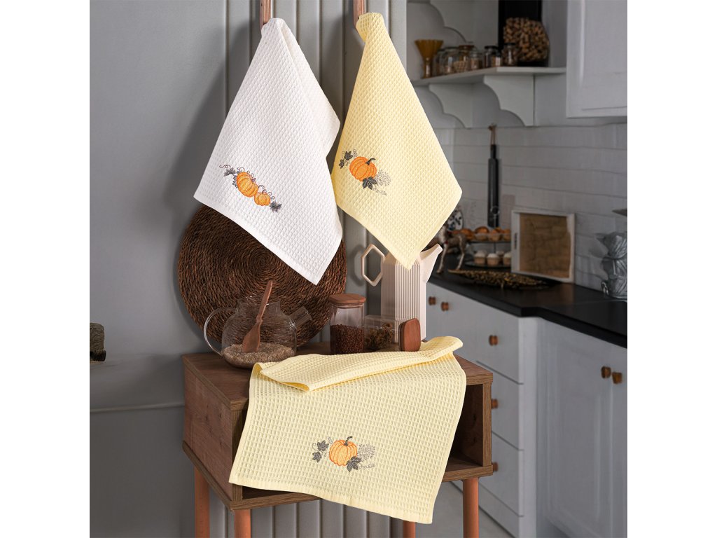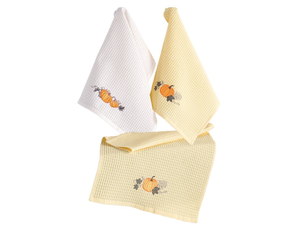 Dárková sada 3 ks vaflových utěrek s vyšitou dýní