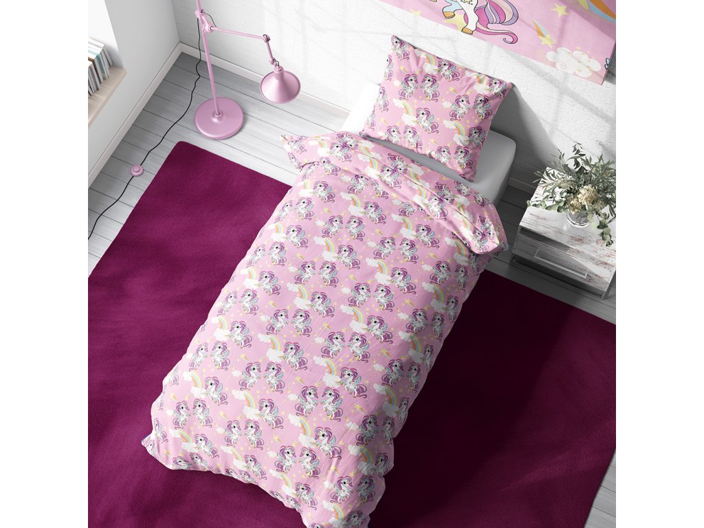 Dětské povlečení Jednorožec Duhový Svět je vyrobeno ze 100% hladké bavlny renforcé se zipovým uzávěrem