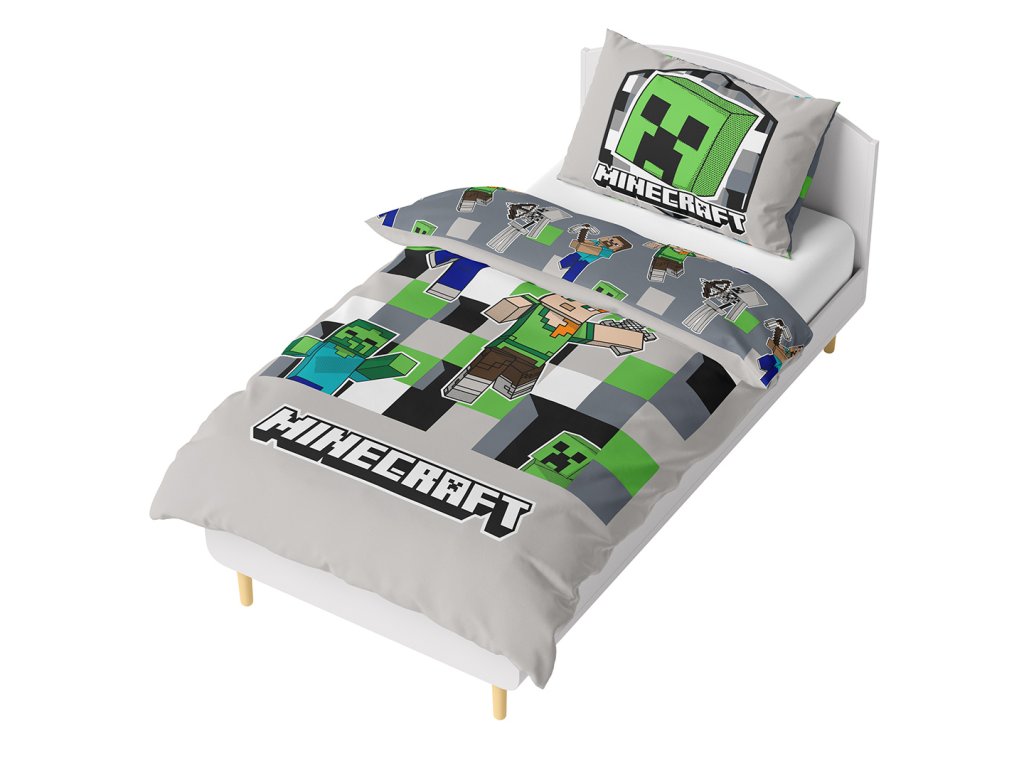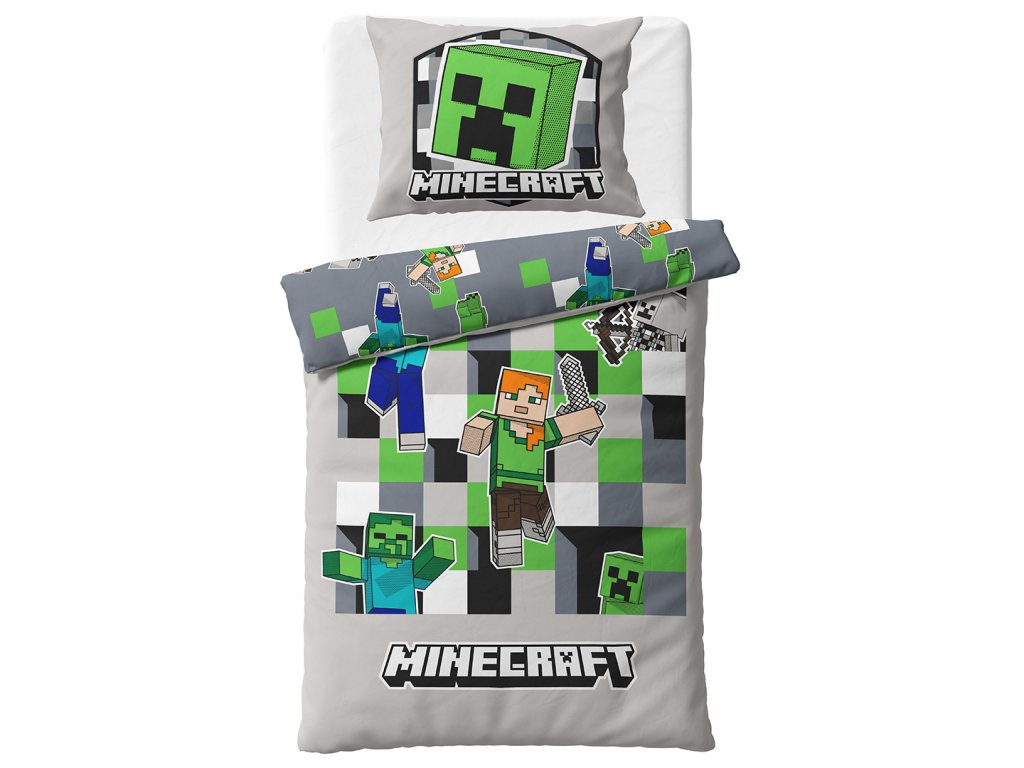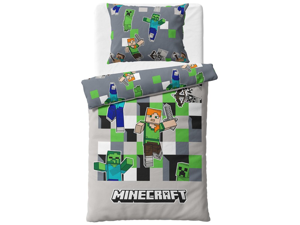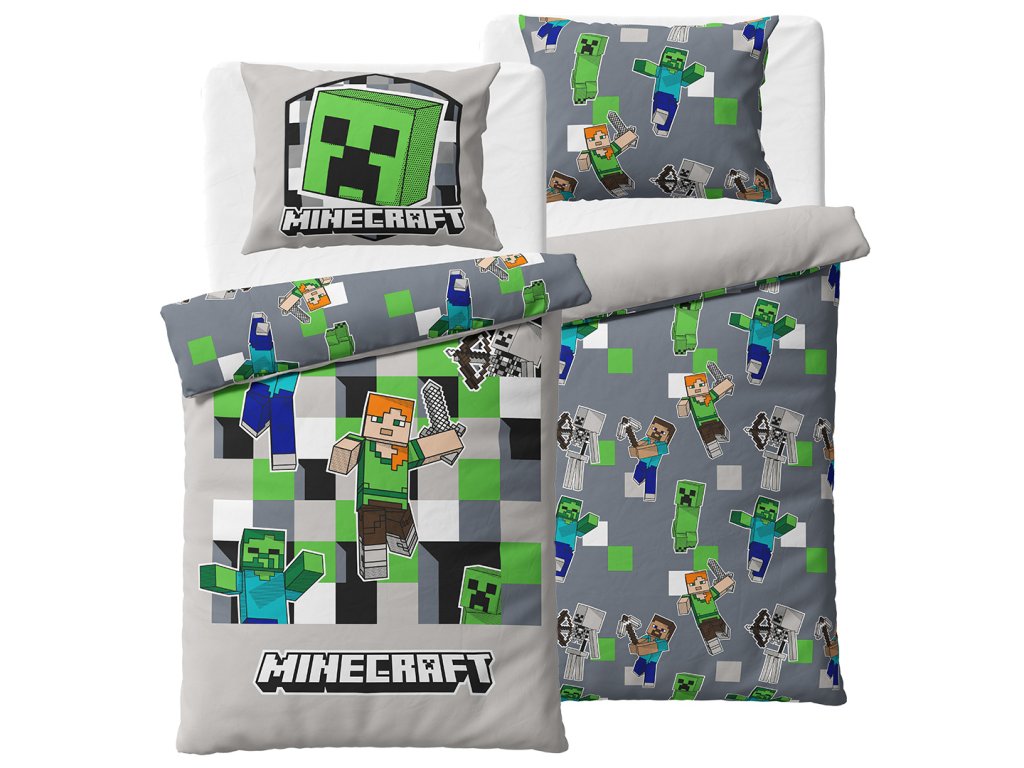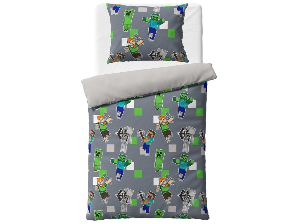 Na lícní straně povlaku přikrývky najdeme Steva, Alexe, Creepera, zombie a další známé postavy