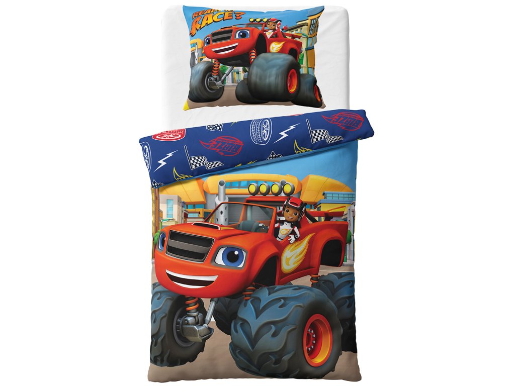 Dětské povlečení Plamínek a Čtyřkoláci Připraven na závod, je vyrobeno ze 100% hladké bavlny renforce a je oboustranné