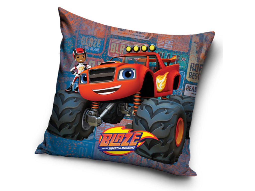 Na obou stranách polštářku je stejný motiv oblíbeného hrdiny Plamínka a jeho řidiče AJ ze seriálu Blaze and the Monster Machines