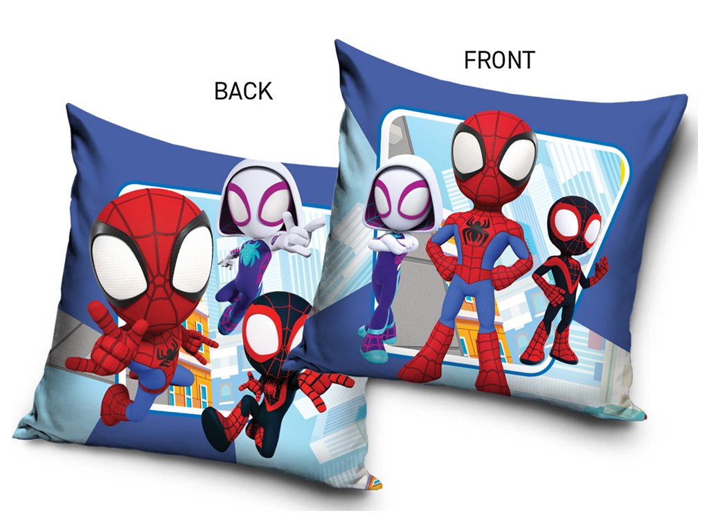 Vzor polštářku je inspirován oblíbeným animovaným seriálem Spidey a jeho úžasní přátelé a je navržen jako oboustranný, aby nabídl dva rozdílné pohledy na svět mladých superhrdinů