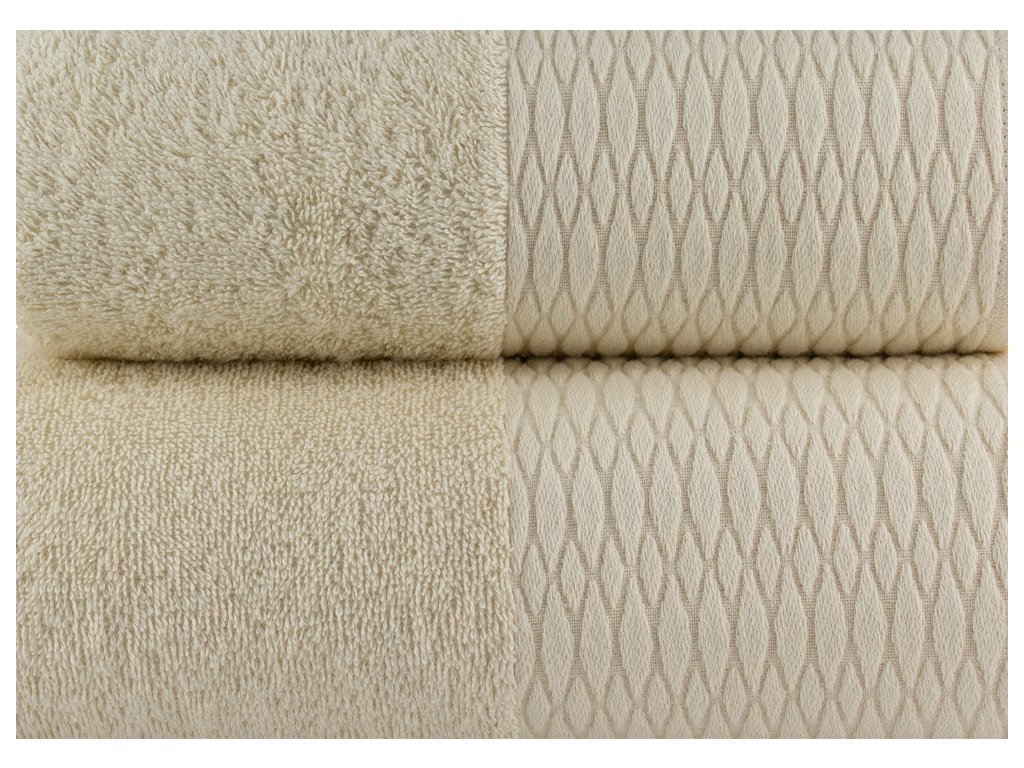 Spodní část ručníku i osušky je lemovaná bordurou, ve kterém jsou vodorovně položené kosočtverce