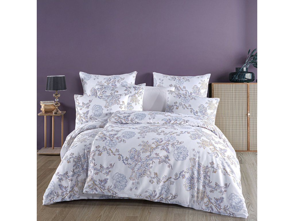 Květinové ornamenty v jemných tónech šedé a světle modré působí velice decentně a elegantně, ideálně pro Vaši ložnici